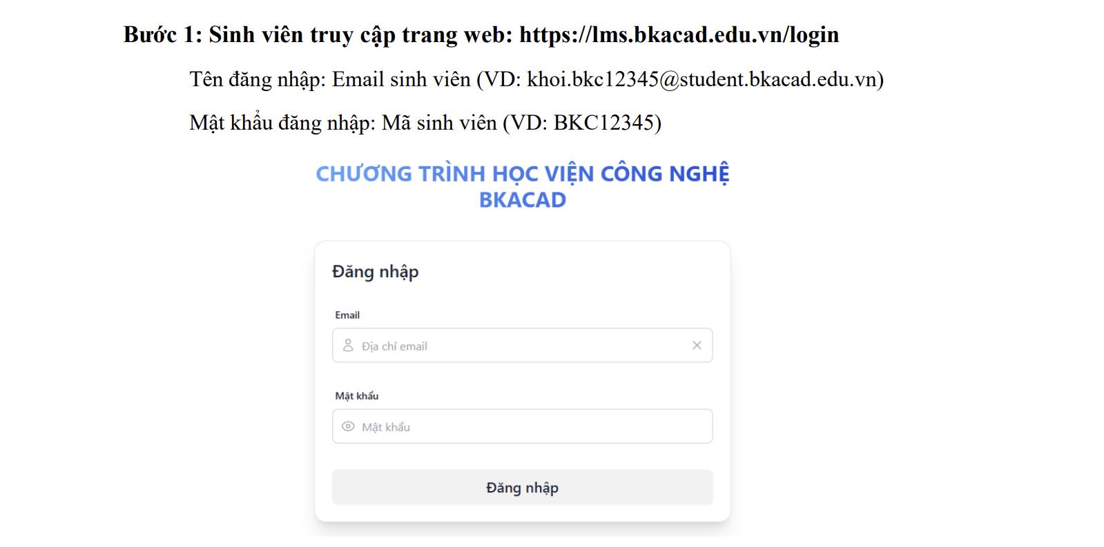 Ví dụ: Acc: Anh.bkc12345@student.bkacad.edu.vn | Pass: Suej1234